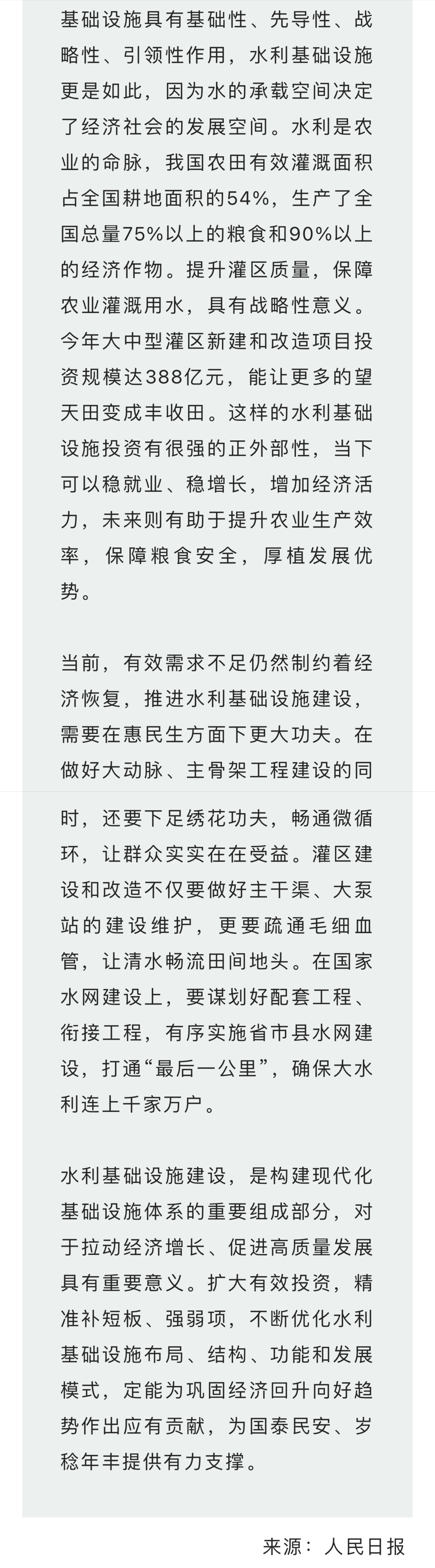 人民時評 | 水利建設支撐歲稔年豐——數據里的“中國活力”